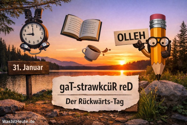 31. Januar | An diesem Datum steht eine ungewöhnliche Idee im Mittelpunkt, bei der Gewohnheiten bewusst umgedreht werden. Menschen schreiben Wörter rückwärts, ziehen Kleidung in verkehrter Reihenfolge an oder erledigen alltägliche Abläufe absichtlich anders als gewohnt. Der Gedanke dahinter ist spielerisch und sorgt für Aufmerksamkeit sowie Unterhaltung im privaten Umfeld und in sozialen Netzwerken. (Kurioser Tag, vor allem in den USA verbreitet)